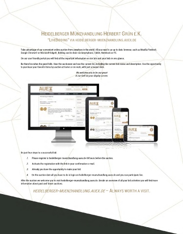 1. Please register in heidelberger-muenzhandlung.auex.de 48 hours before the auction.